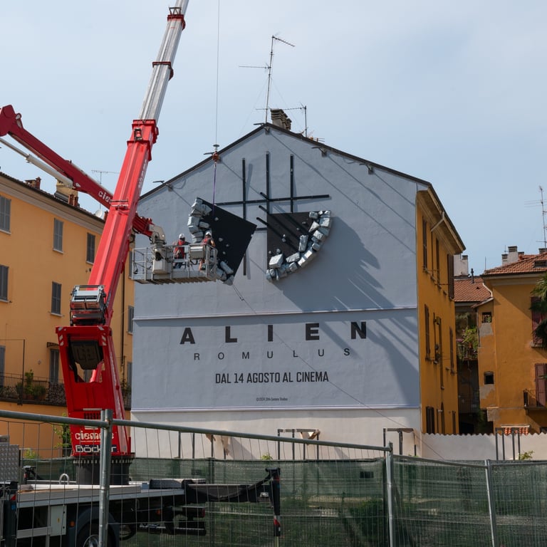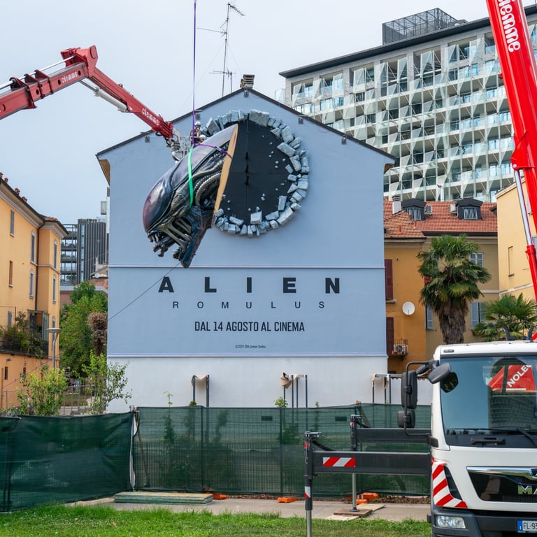 In occasione del lancio del film Alien: Romulus, Disney ha scelto di bucare lo schermo… proprio come fa lo Xenomorfo con il petto delle sue vittime. La celebre creatura della saga, nota per nascere squarciando il torace dei malcapitati, irrompe questa volta da una delle facciate principali di un edificio vicino al Bosco Verticale di Milano, fissando negli occhi i passanti.